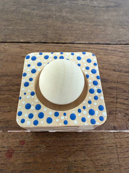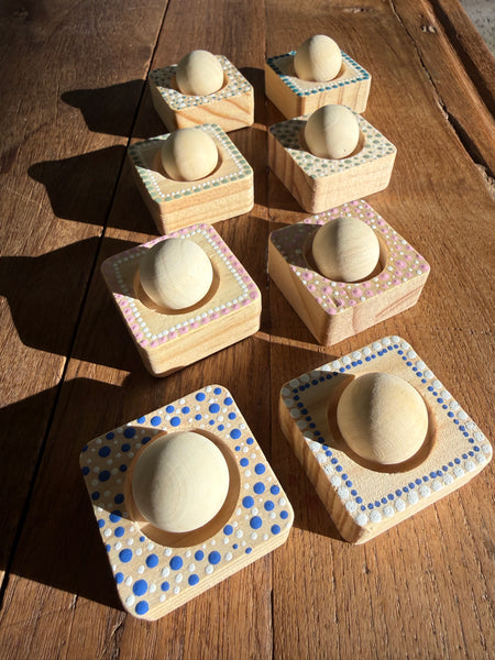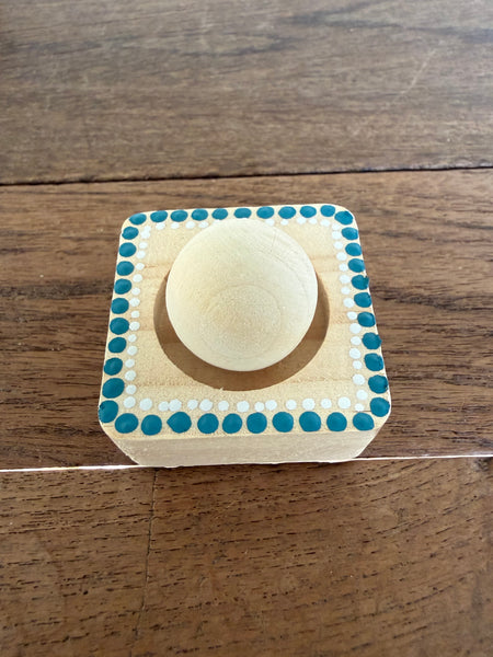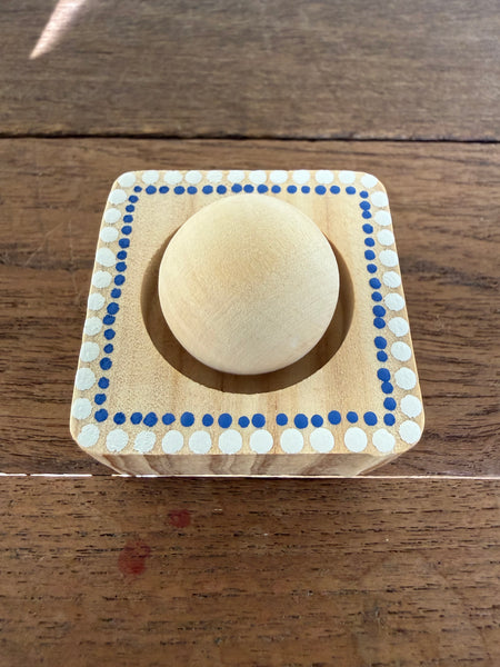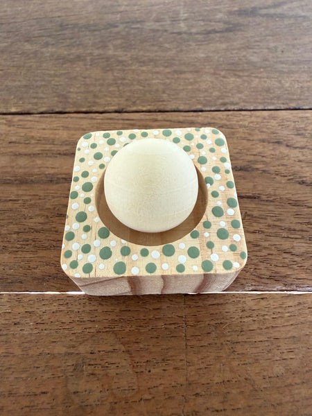 This timber diffuser combines craftsmanship with functionality. Constructed from pine and hand-painted by Aboriginal artist Tim Yule, each piece showcases authentic Indigenous design elements. The sphere sits securely on its accompanying stand, allowing optimal fragrance dispersal throughout your environment. Included is a 5ml bottle of wood sage fragrance—a sophisticated blend that complements the natural timber aesthetic. The diffuser's design ensures even scent distribution while serving as a distinctive decorative object that reflects both artistic integrity and practical purpose.